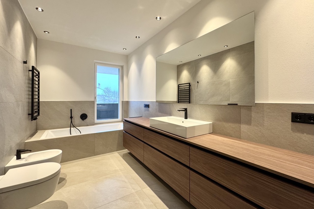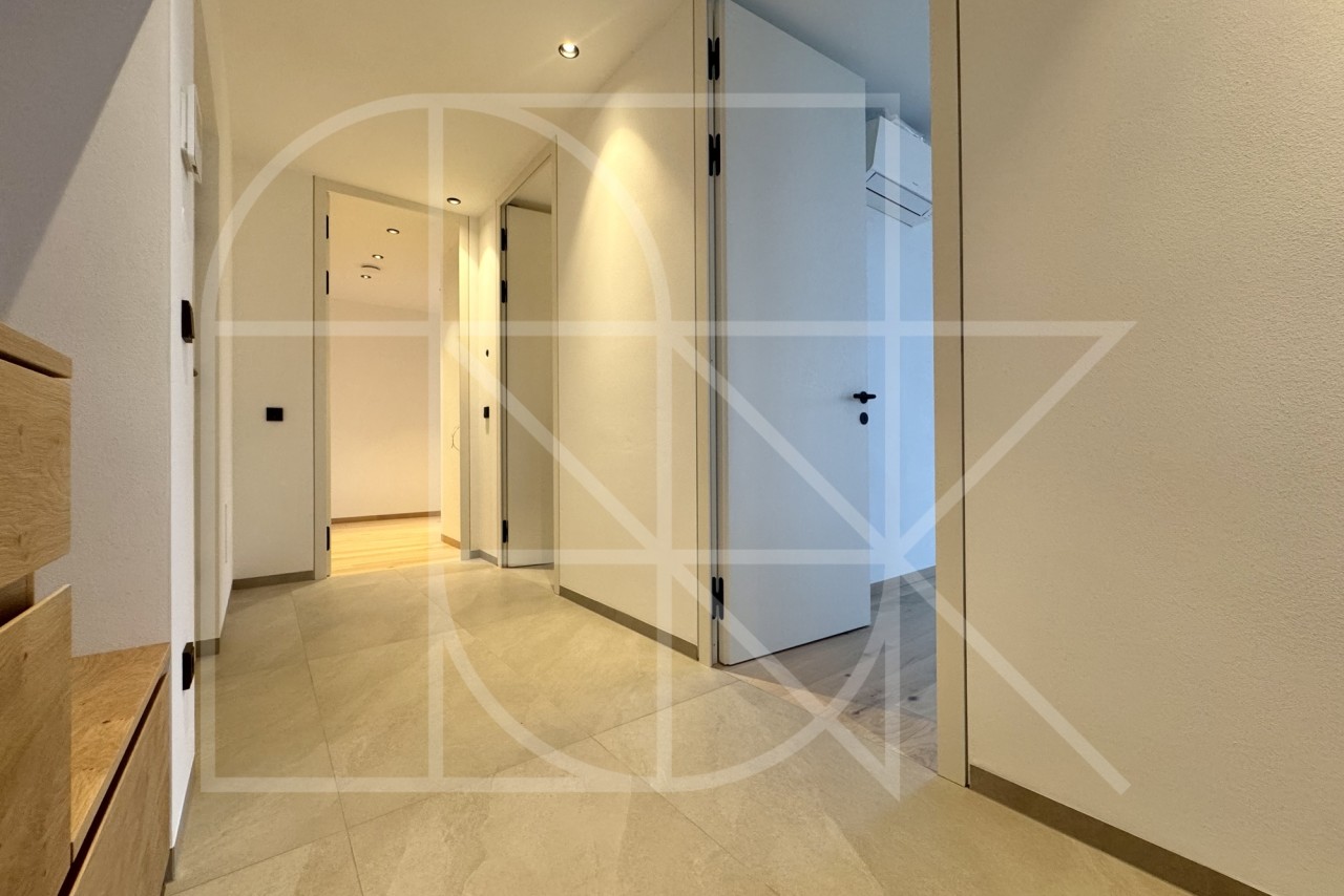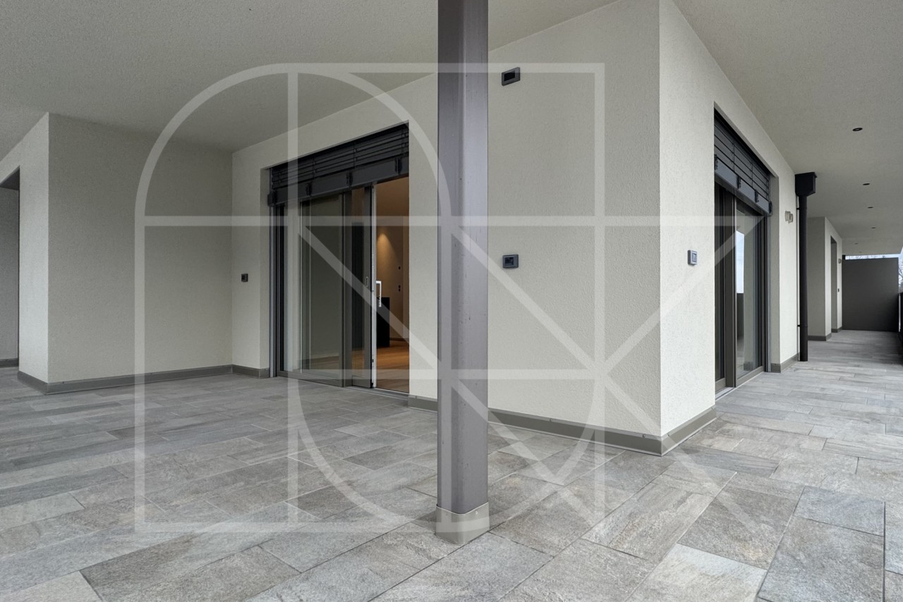 Die Wohnung überzeugt durch eine klare und elegante Raumaufteilung: ein einladender Eingangsbereich, eine offene Wohnküche mit diskret integrierter Waschküche, ein Hauptschlafzimmer mit begehbarem Kleiderschrank, ein weiteres Schlafzimmer, ein Badezimmer mit Fenster und Badewanne sowie ein separates Tages-WC mit Dusche. Ein besonderes Highlight ist die großzügige Terrasse mit Süd- und Westausrichtung– ideal, um Sonne und Ruhe in vollen Zügen zu genießen.