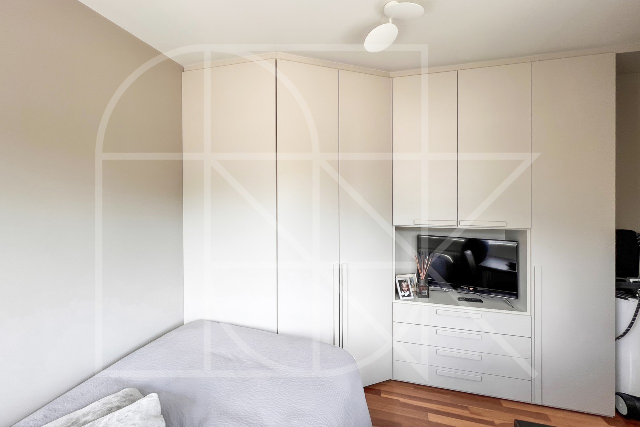 Die Wohnung verfügt über zwei sehr helle Schlafzimmer, von denen eines sogar mit einem eigenen Balkon und einem begehbaren Kleiderschrank ausgestattet ist.