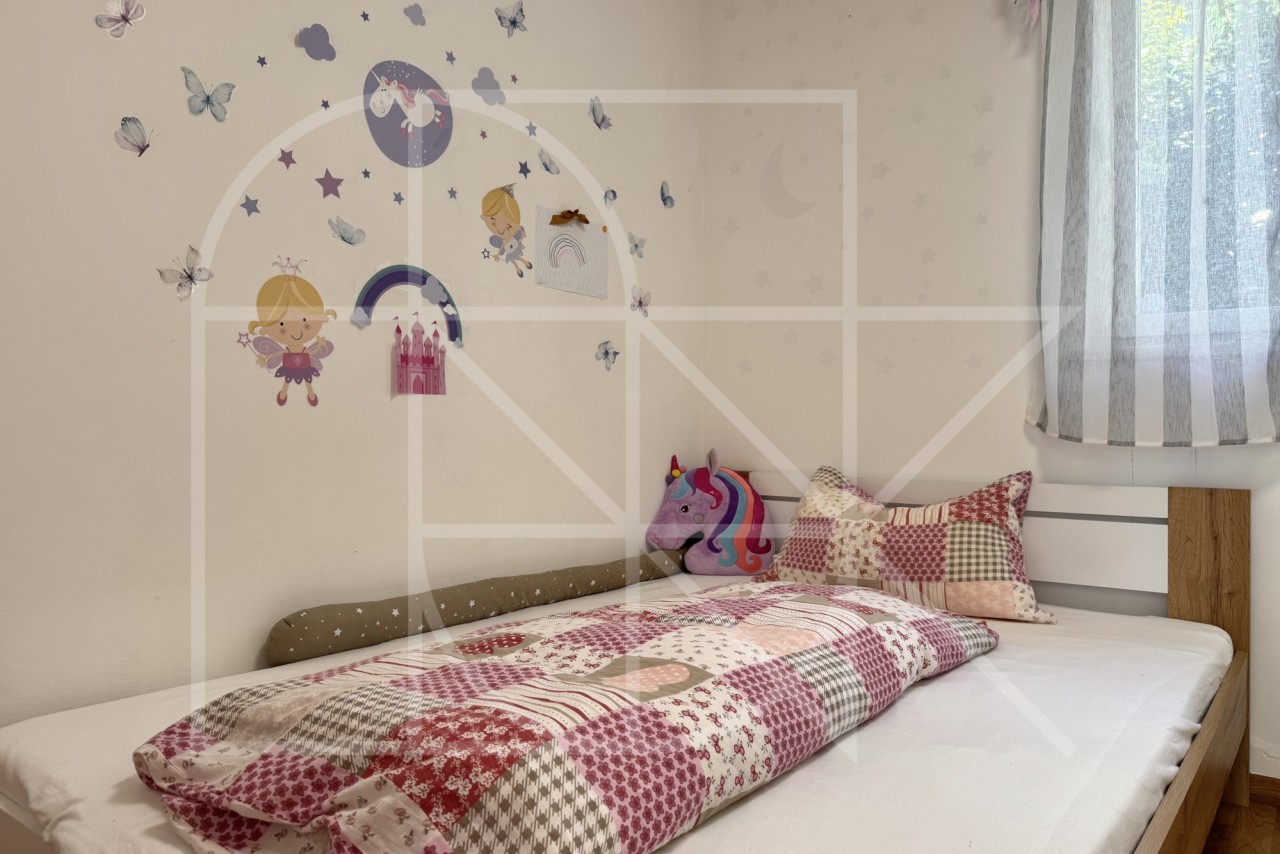 Das Hauptschlafzimmer mit begehbarem Kleiderschrank bietet viel Platz und Ruhe, während ein weiteres helles Zimmer individuell als Kinder-, Gäste- oder Arbeitszimmer genutzt werden kann. Das moderne Bad mit Fenster ist mit einer gemütlichen Badewanne ausgestattet und wird so zu Ihrer kleinen persönlichen Wohlfühloase.