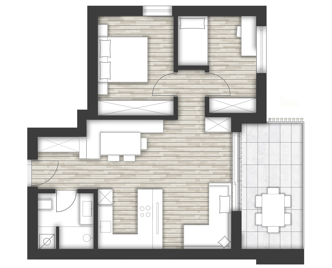 L'appartmento 12 é un trilocale situato al primo piano e composto da: ingresso, soggiorno con cucina, 2 camere da letto, bagno, terrazza e cantina. Dietro il pagamento di un corrispettivo l'appartamento può essere svincolato dal vincolo "alloggio per residenti". Tutte le informazioni sono da considerarsi indicative e potrebbero essere soggette a variazioni.