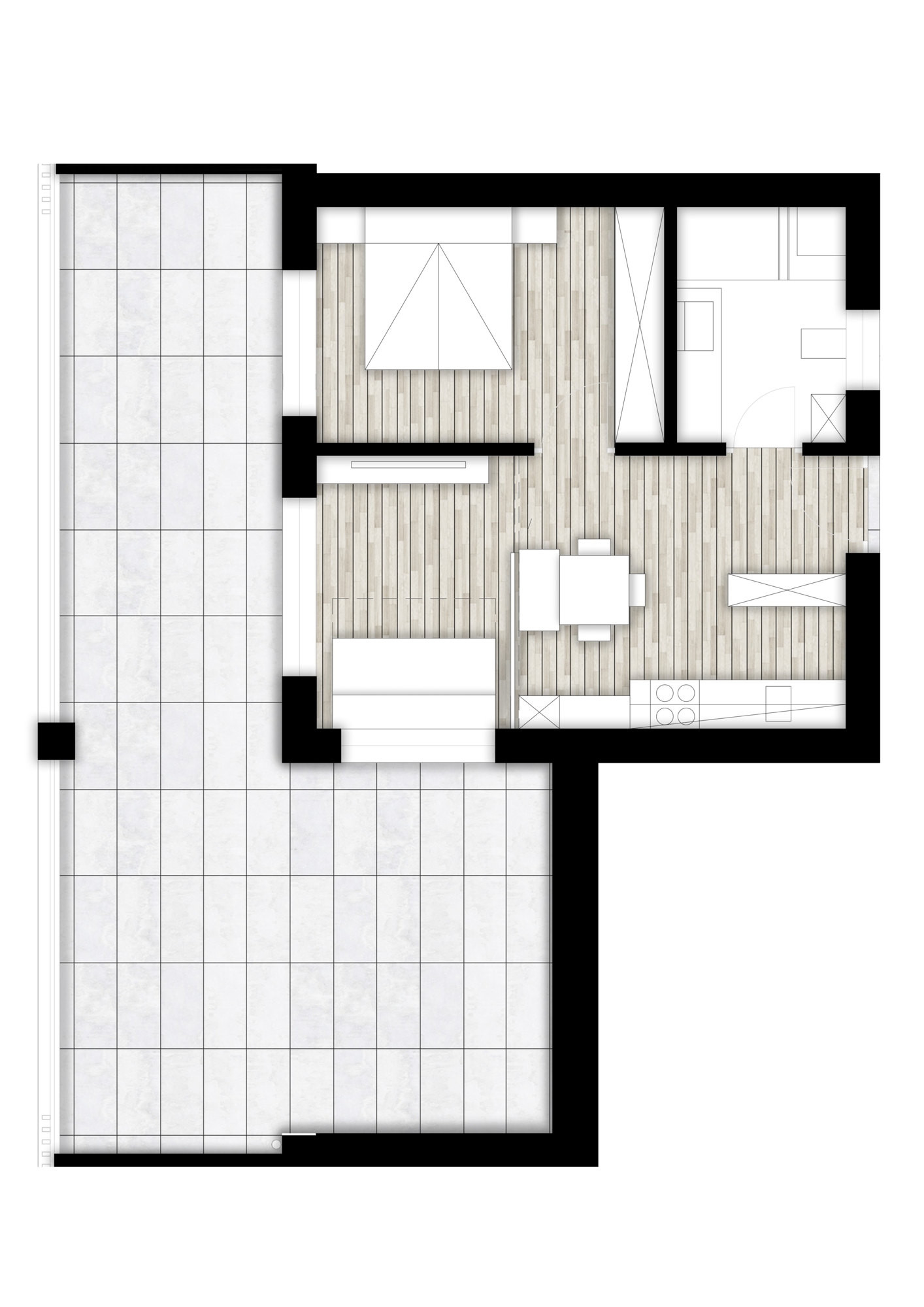 Questo meraviglioso attico si compone di una moderna zona giorno con cucina, camera da letto, bagno funzionale e un'ampia terrazza soleggiata con vista panoramica.